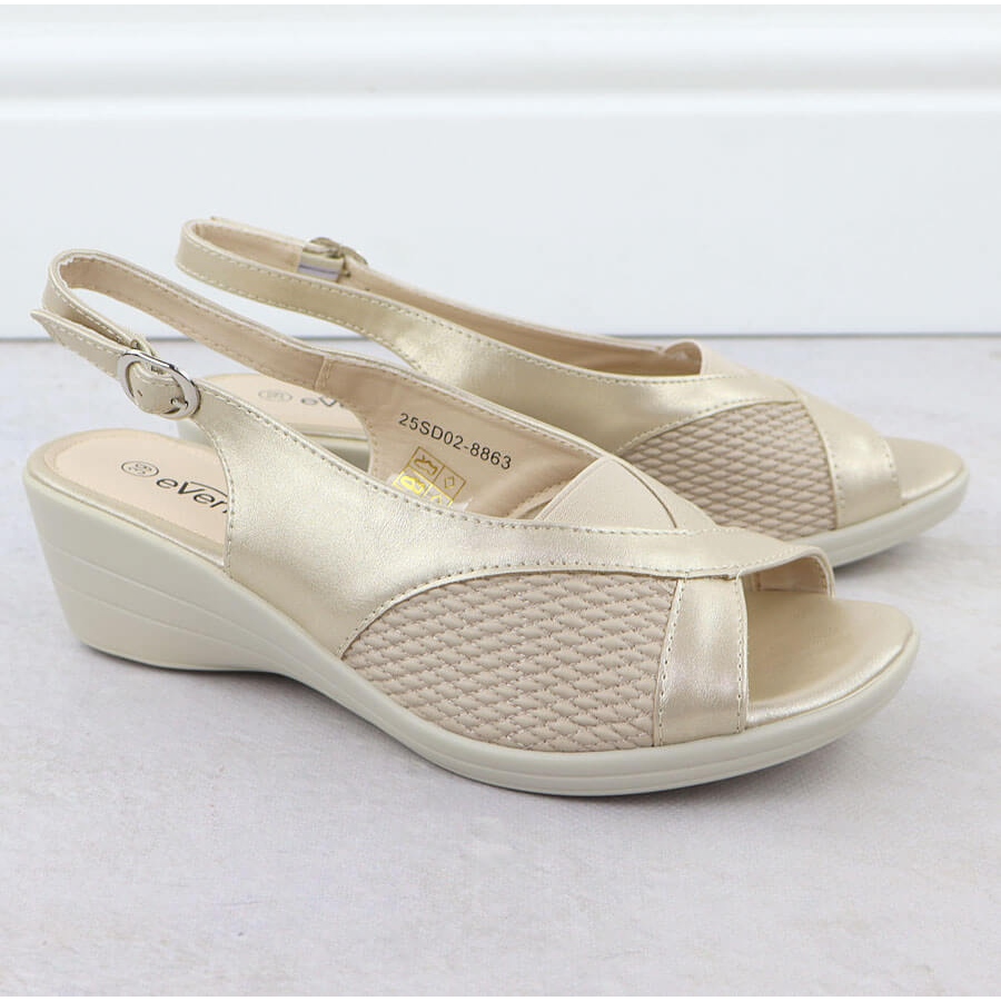 Descubra a nova dimensão do conforto com as sandálias femininas na cunha Evento 8863. Essas sandálias elegantes e bege são a combinação perfeita de elegância e funcionalidade, que funcionará a cada estilo de verão. O sistema de conforto inovador, usado nesses sapatos, fornece suavidade e conveniência sem precedentes, graças à inserção de couro orgânica de alta qualidade.