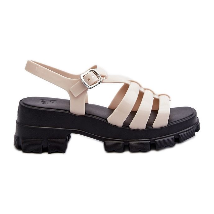 Graças ao corte esportivo e ao cheiro único de borracha de balão, que é acompanhada por usar essas sandálias, todo momento gasto nelas será um prazer. A sola de 6 cm de alta proporciona conforto durante o uso prolongado, e a cor preta da sola contrasta bem com o material bege claro.