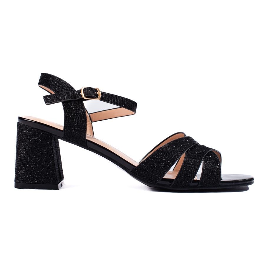 Detalhes: Sandálias femininas pretas com glitter preto