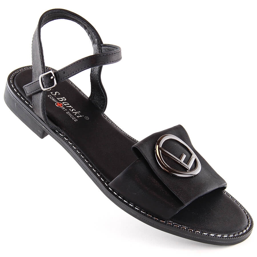S.Barski Sandálias femininas pretas confortáveis com decoração S.Barski 045 preto