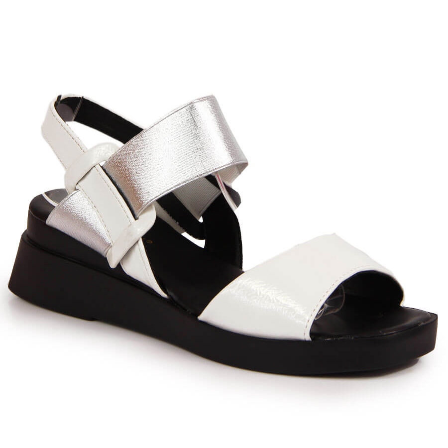Detalhes: Sandálias femininas salto de cunha com branco Potocki