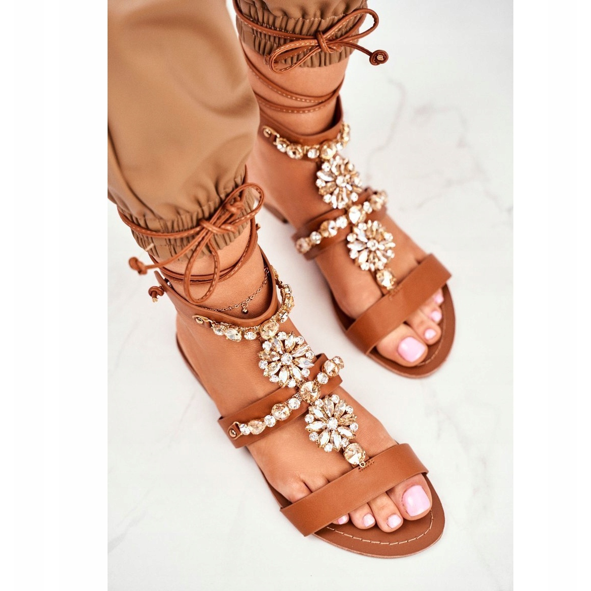 Detalhes: Sandálias Gladiador Femininas Com Cristais Camel Hype marrom