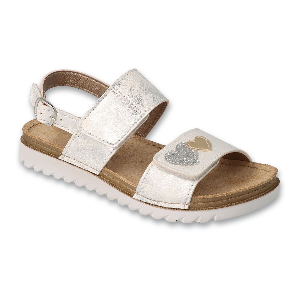 Detalhes: Sandálias infantis Befado com palmilha de couro 062Y001, prata com corações