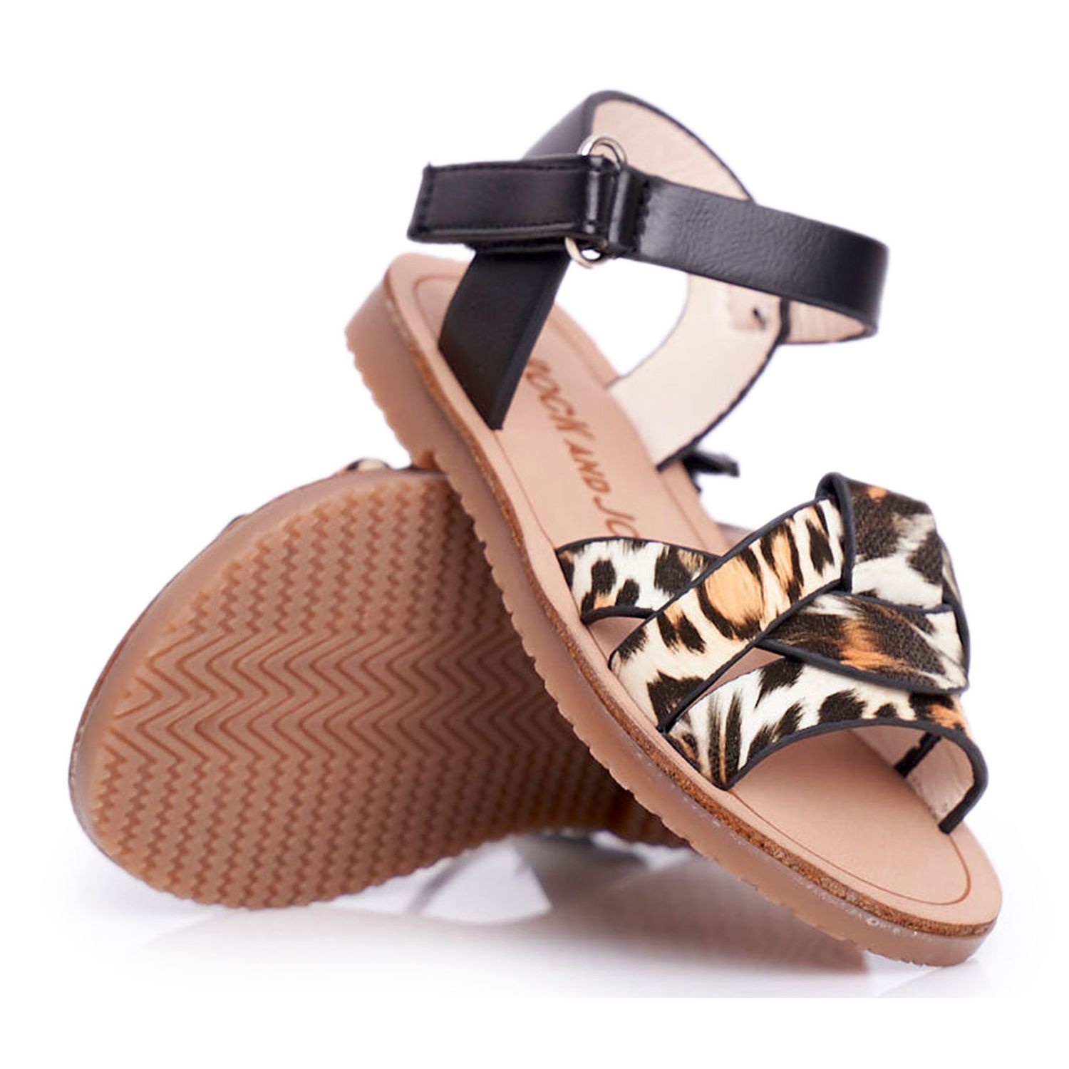 FRROCK FRROCK Sandálias infantis com velcro para meninas Leopard Mimi preto