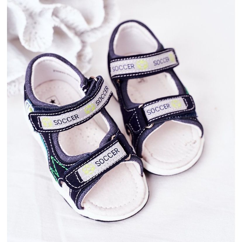 Detalhes: EVE Sandálias infantis de futebol azul marinho com velcro multicolorido