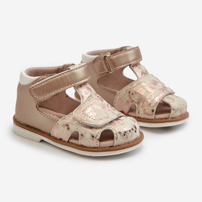 Detalhes: Sandálias infantis estampadas com velcro, Maellita dourada dourado