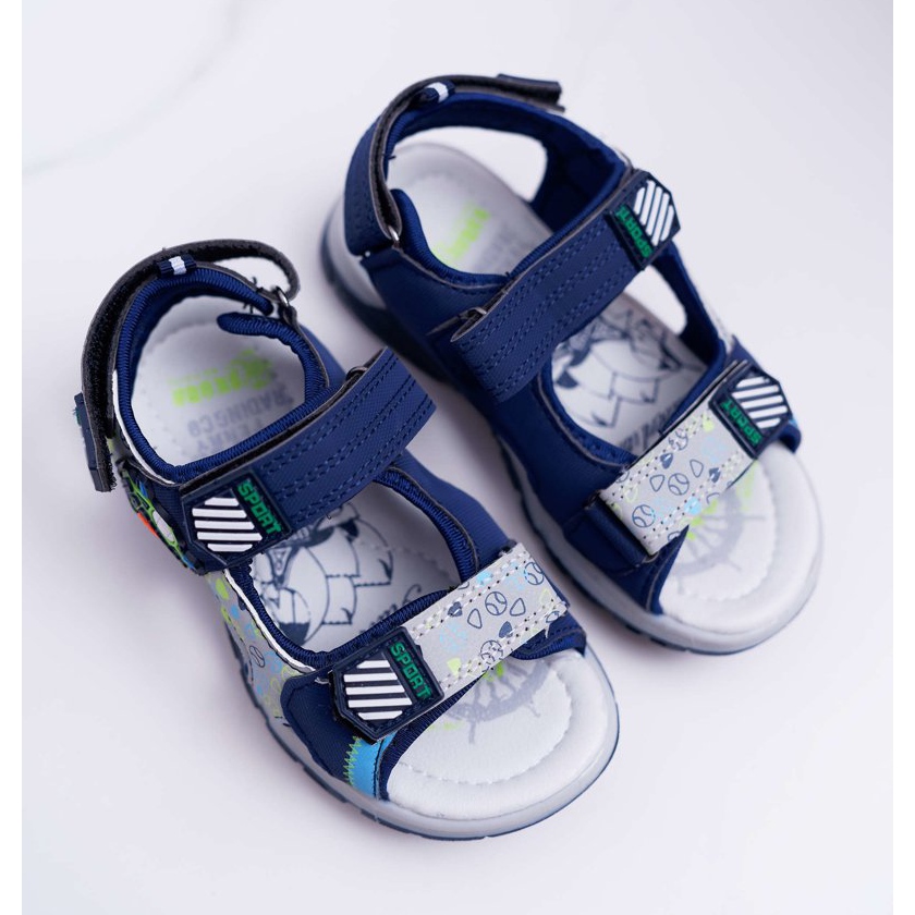 FRROCK Sandálias infantis juvenis para meninos com velcro azul marinho Reksio azul-marinho