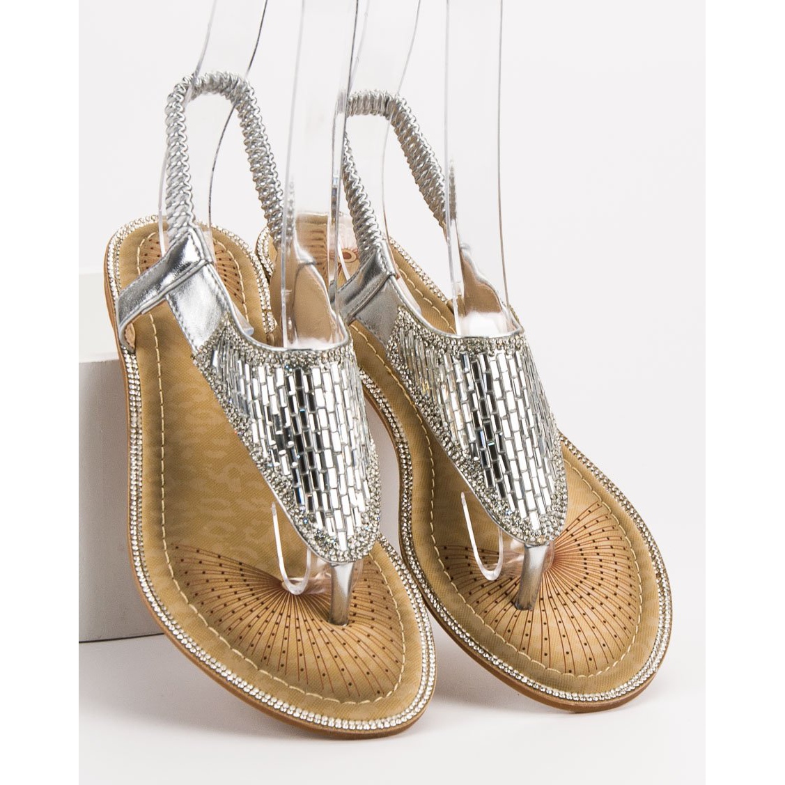Os chinelos foram enriquecidos com strass e cristais atraentes, que lhes conferem um caráter único. São perfeitos para estilos casuais, mas também para ocasiões menos formais. Estas sandálias prateadas são obrigatórias na coleção de calçados femininos de todo verão. Escolha Encor e desfrute de um visual moderno!