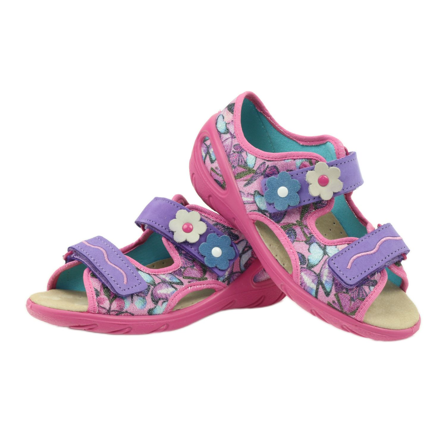 Descubra conforto e estilo com as sandálias leves Befado, modelo 065x120! Estes charmosos chinelos em delicados tons de roxo, azul e rosa são a escolha perfeita para qualquer menina. A utilização de palmilha em couro e forro macio garante excelente conforto de uso, e a sola flexível e perfilada em borracha térmica garante segurança em diversas superfícies graças às suas propriedades antiderrapantes.