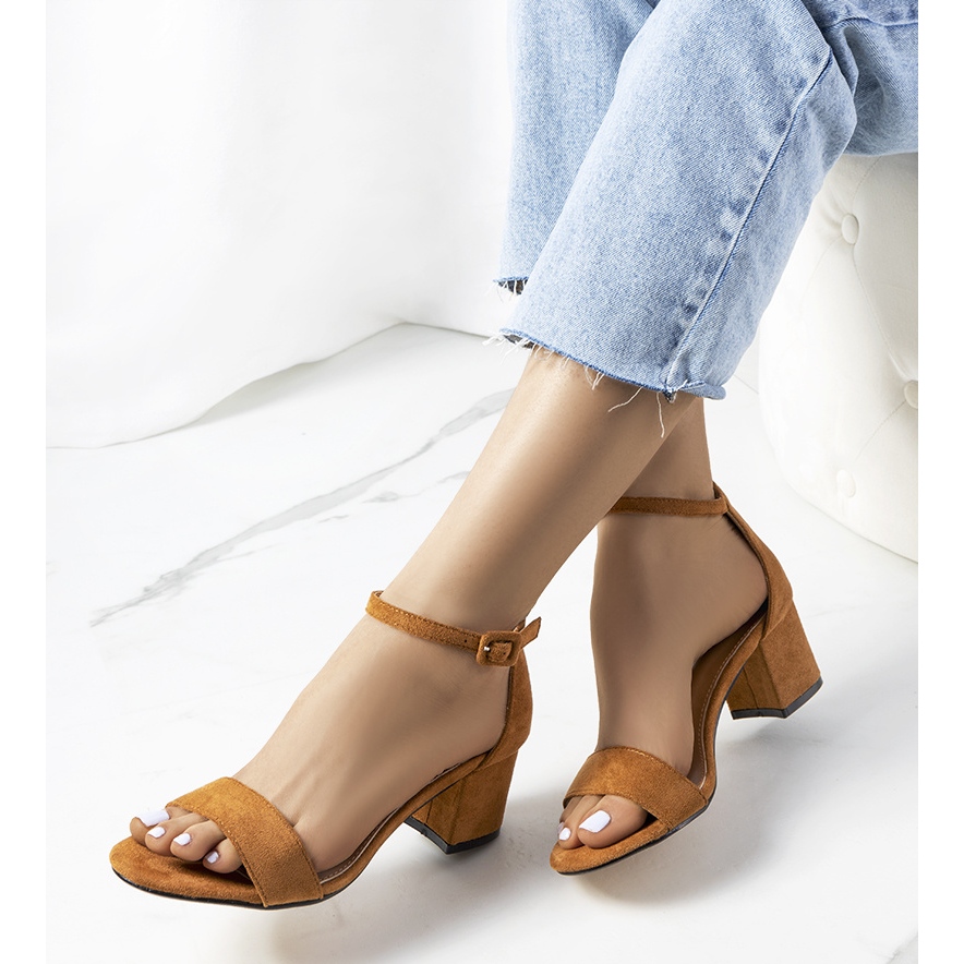 Descubra o conforto e a elegância que as sandálias de salto castanho Deshe oferecem. Estes clássicos sapatos femininos da marca Inna, em tom camel, são a escolha perfeita para os dias quentes. Confeccionadas em couro camurça ecológico de alta qualidade, as sandálias além de terem estilo, garantem conforto de uso.