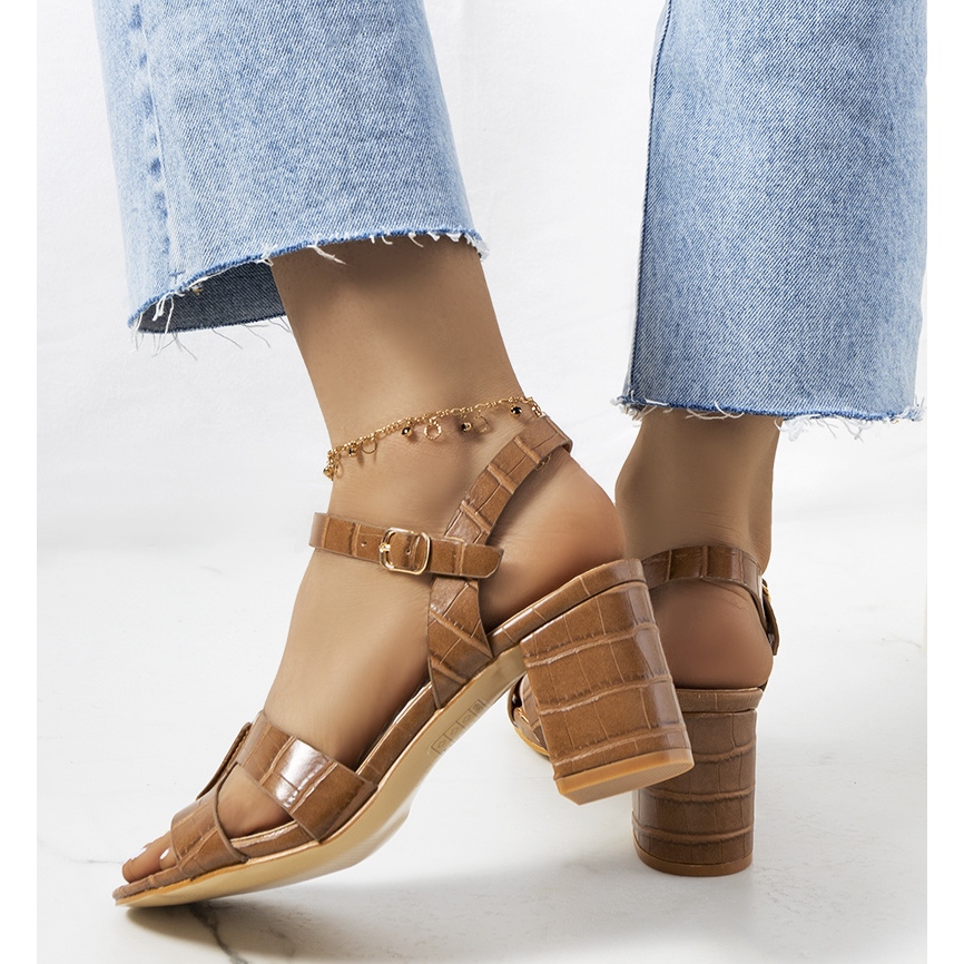 As sandálias de salto alto Brown Haiden são a escolha perfeita para os dias de verão e complementam perfeitamente qualquer estilo. Graças à utilização de couro ecológico de alta qualidade tanto na palmilha quanto na gáspea, o calçado proporciona extraordinário conforto de uso durante todo o dia. Um pequeno poste de 7 cm de altura destaca perfeitamente a figura, agregando elegância e feminilidade a cada passo.