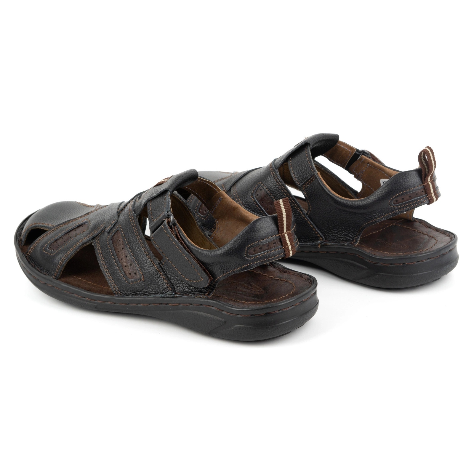 Detalhes: KOMODO Sandálias masculinas de couro com velcro 523K, pretas preto