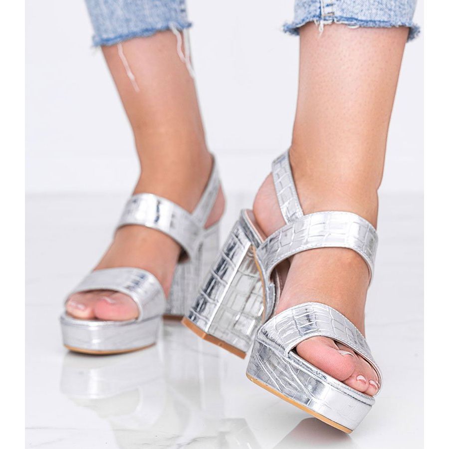 Descubra as exclusivas sandálias de salto alto Liv num deslumbrante tom prateado! Estes lindos sapatos são cuidadosamente feitos de couro ecológico de alta qualidade e seu motivo exclusivo de couro de crocodilo adiciona personalidade a qualquer estilo de verão. A cor prateada e brilhante torna as sandálias atraentes e se adaptam perfeitamente às tendências da estação.