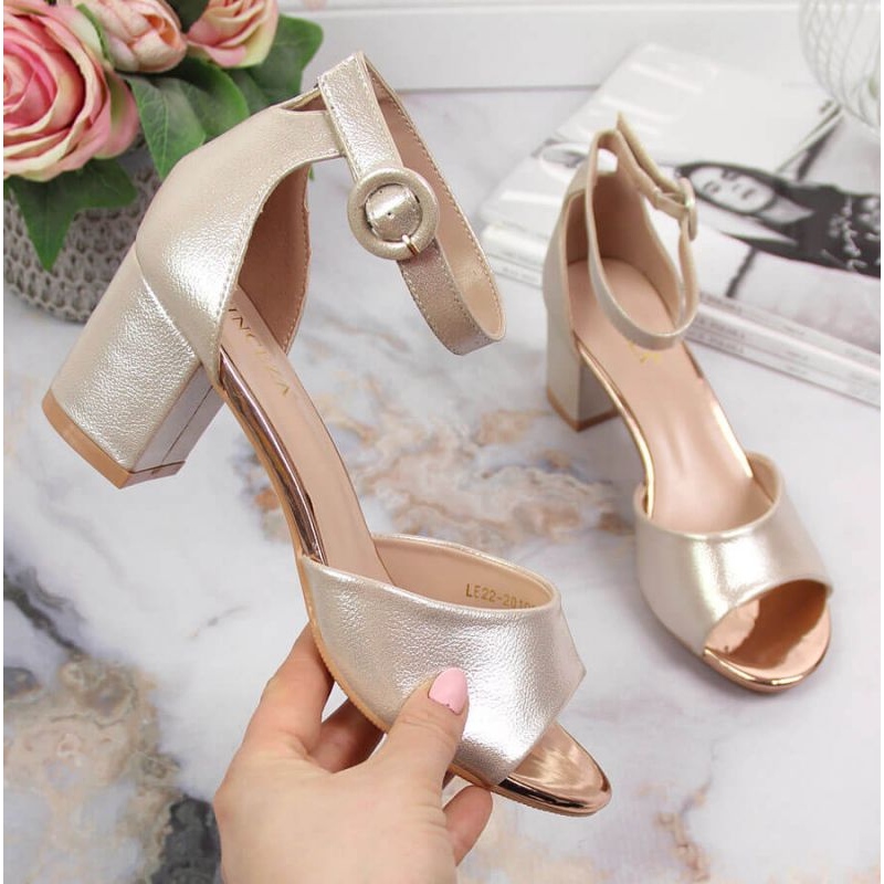 Sandálias elegantes de Vincez são uma combinação de estilo, estilo e conforto. O acabamento dourado com um brilho metálico acrescenta o personagem de qualquer estilo, e o posto estável de 6,5 cm de altura garante o conforto de usar o dia e a noite.