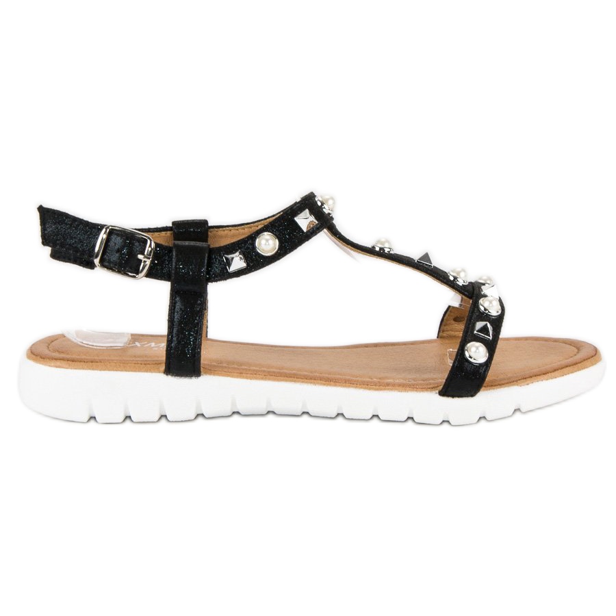 Apresentamos sandálias rasteiras com strass pretos, uma escolha perfeita para os dias quentes de verão. Estas sandálias femininas únicas caracterizam-se por um corte elegante e clássico e um atraente acabamento em forma de strass metálicos, que lhes conferem um aspecto original e predatório.