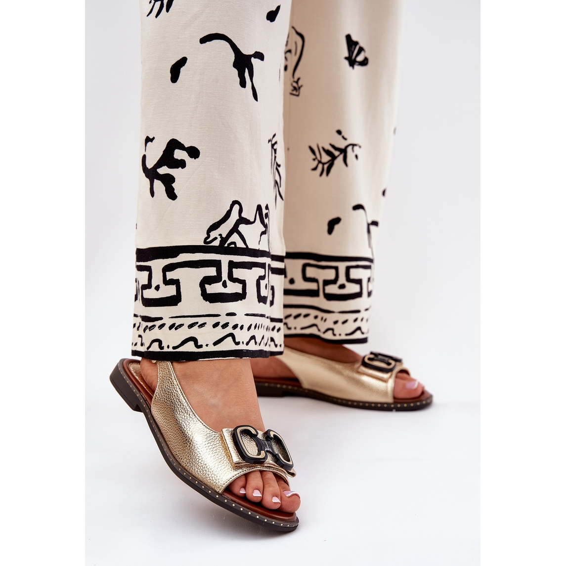 Detalhes: Jezzi Sandálias planas com uma decoração de couro ecológico dourado