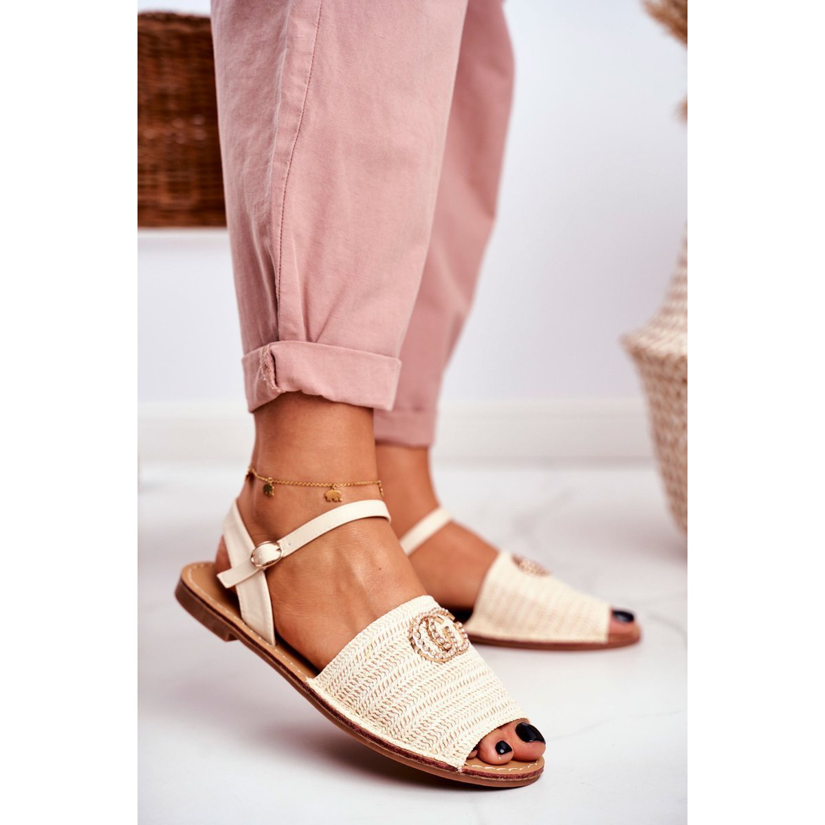 Sandálias com salto plano (altura 1,5 cm) proporcionam conforto ao longo do dia, e a ausência de biqueira enfatiza ainda mais sua leveza e leveza. O interior em couro ecológico garante prazer de uso, enquanto a sola sintética é resistente a danos e de fácil manutenção.