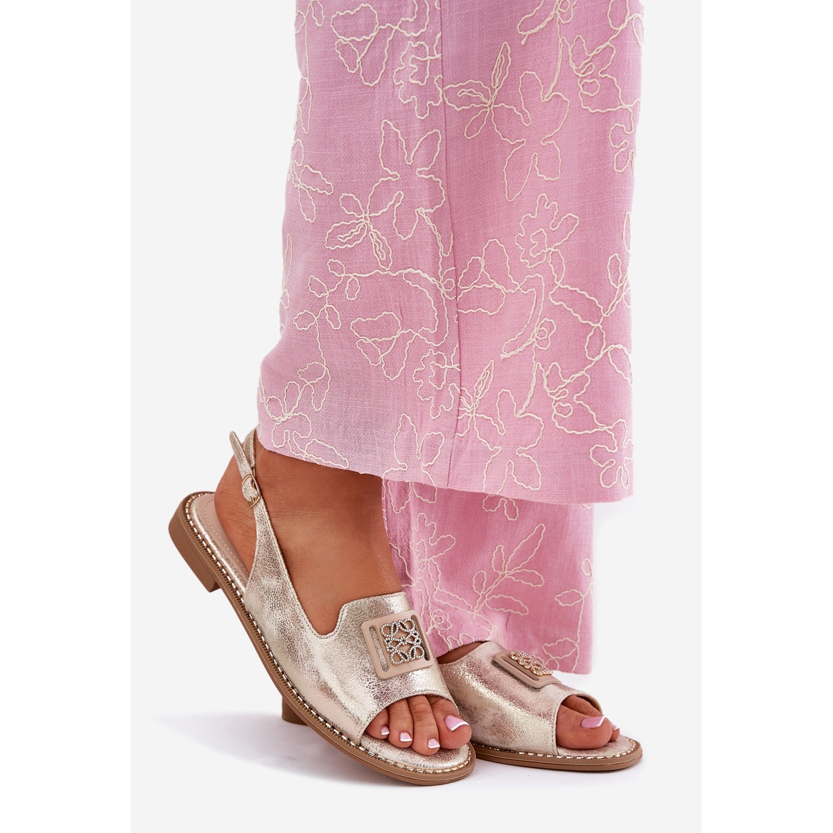 S.Barski S.Barski Sandálias planas femininas elegantes com um ornamento de S. Barski KV51-082 Gold dourado