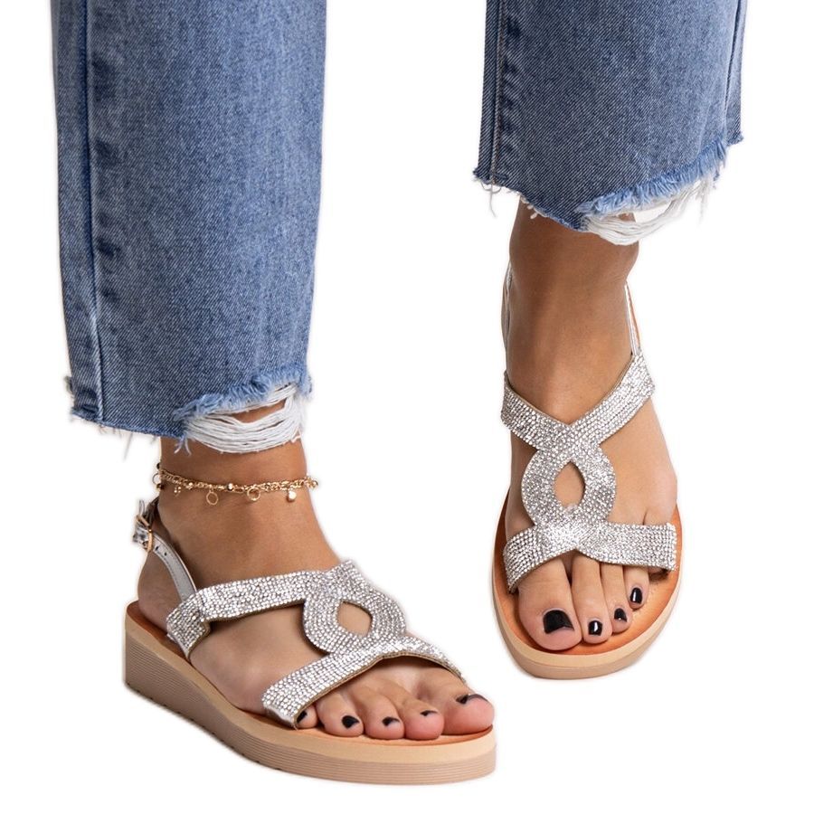 Detalhes: Sandálias plataforma prateadas com strass Mifsa prata