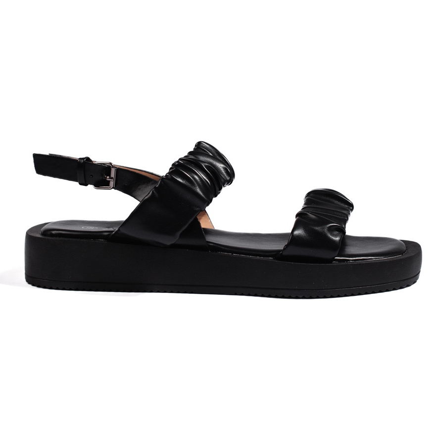 Apresentamos sandálias pretas elegantes inseridas em uma plataforma de outra marca. Esses sapatos exclusivos combinam um estilo clássico com design moderno, perfeitamente adequados às necessidades de uma mulher moderna. Feito de couro ecológico de alta qualidade, eles não apenas proporcionam aparência estética, mas também conforto de desgaste.