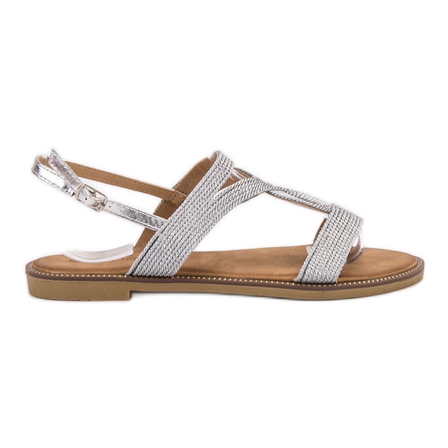 As sandálias cinza/prata da Erynn são a escolha perfeita para mulheres que valorizam conforto e estilo. Estes sapatos extremamente femininos são um complemento perfeito para estilos casuais de verão. Graças à delicada decoração com strass, as sandálias ganham um caráter único que as distingue dos demais modelos.