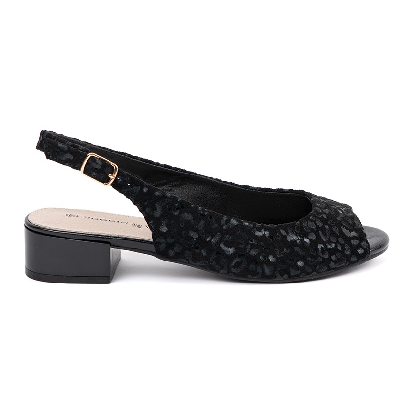Apresentamos sandálias negras com um leopardo de volta de baixa forma com Goodin - uma escolha ideal para todas as mulheres que não apenas valorizam o conforto, mas também querem parecer elegante. Essas sandálias elegantes combinam design moderno e alta qualidade, o que as torna obrigatórias nos próximos dias de primavera-verão.