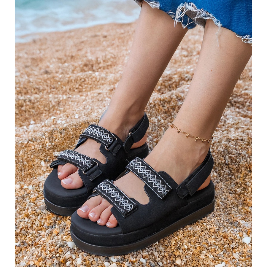 Inna marka Sandálias pretas com listras bordadas na plataforma preto