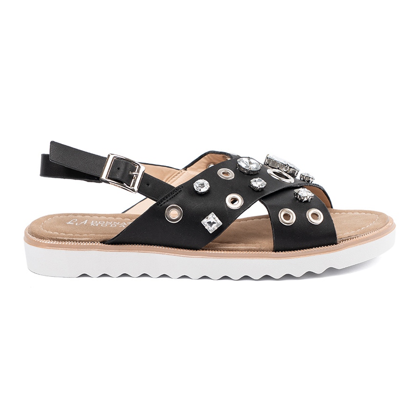 Descubra a nova dimensão de conforto e estilo com sandálias pretas com pregos decorativos de Shelvt. Essas sandálias femininas únicas são uma ótima opção para o verão, ideais para estilizações cotidianas. Feito de imitação de pele 100% de alta qualidade, eles fornecem uma aparência elegante, permitindo o conforto usar.