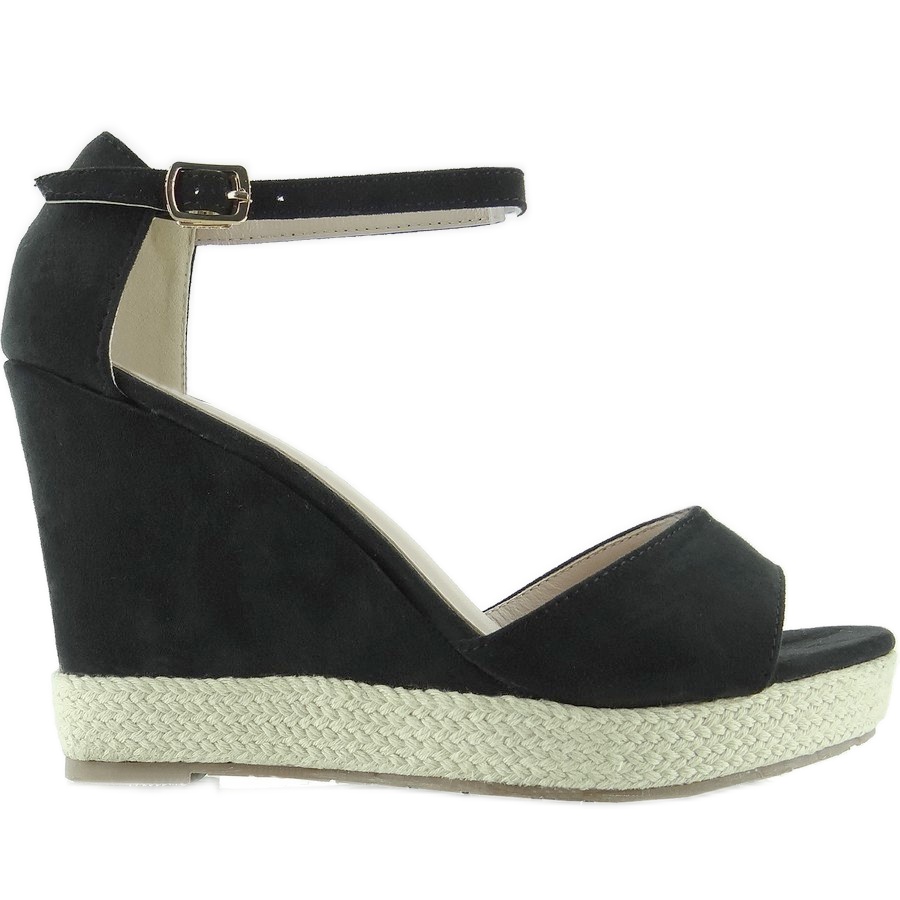 Inna marka Sandálias pretas com salto em cunha, cordão de linho preto