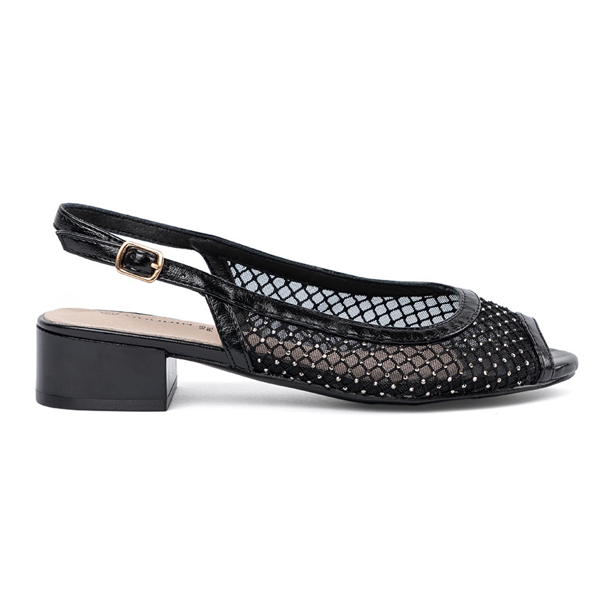 Descubra a elegância e o conforto, graças às sandálias Black Goodin com uma malha decorativa! Essas sandálias únicas são uma ótima opção para mulheres que desejam ganhar um elemento elegante e prático em seu guarda -roupa de verão. O corte clássico e o salto aberto os fazem se misturar perfeitamente com estilizações casuais e mais elegantes.
