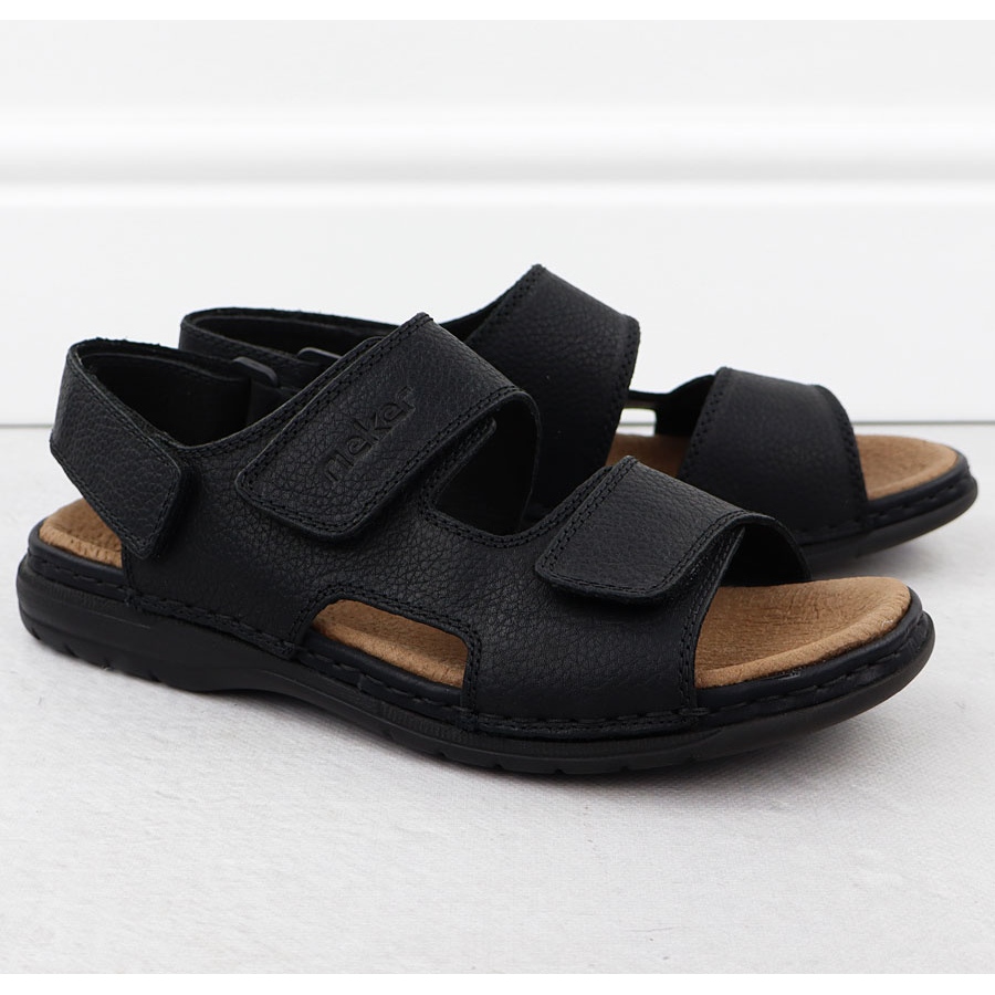 Detalhes: Sandálias pretas confortáveis de couro, Rieker preto 25558-01