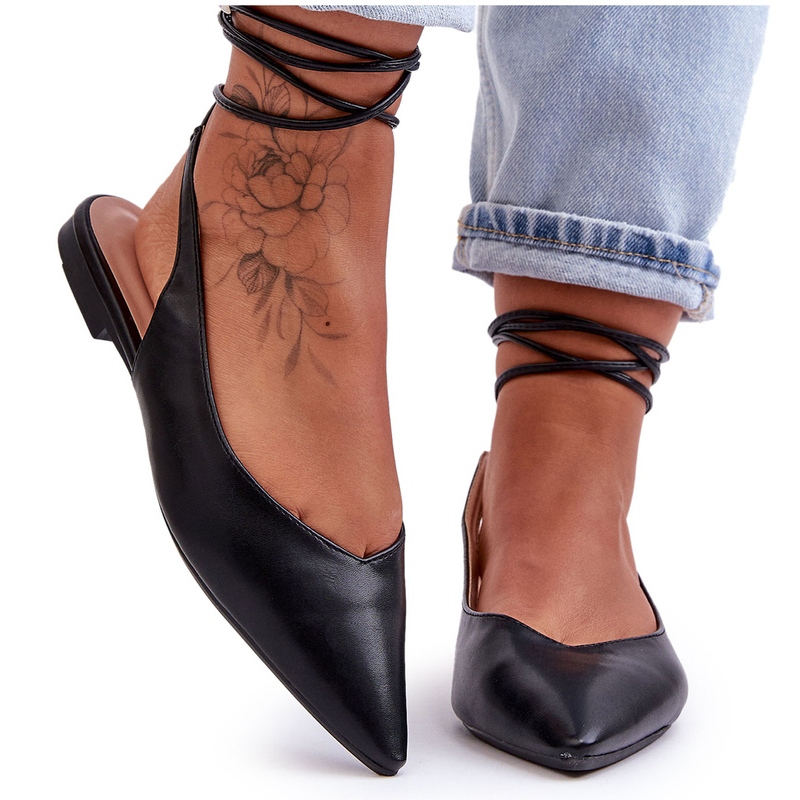 Detalhes: Sandálias pretas de bailarinas amarradas femininas preto