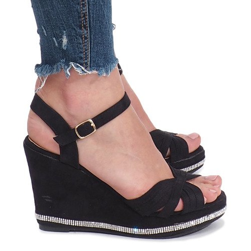 A altura da cunha de 10 cm e a altura da plataforma de 2,5 cm criam um todo harmonioso que alonga opticamente as pernas, garantindo conforto em cada passo. Além disso, strass e strass adicionam um pouco de glamour, combinando perfeitamente com as tendências atuais.