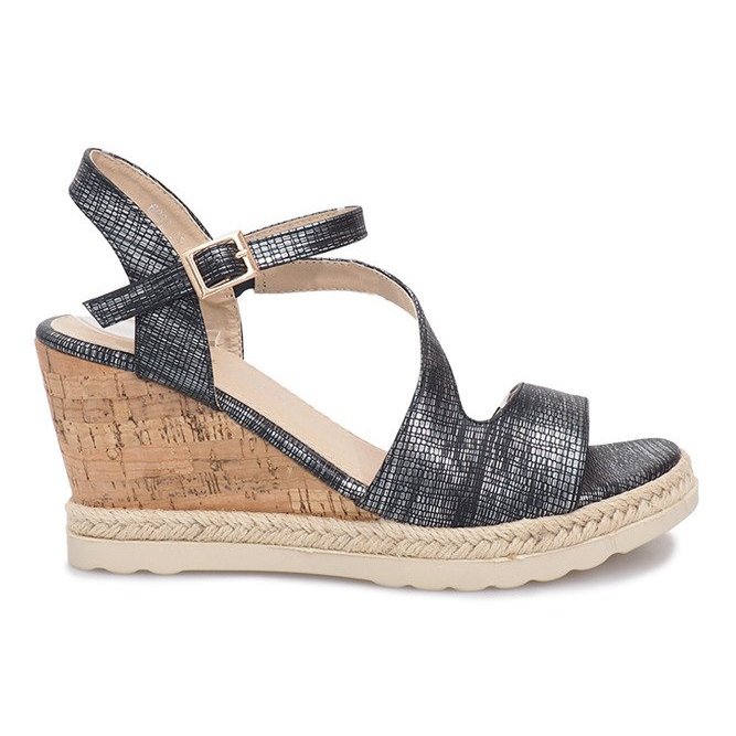 Conheça as nossas sandálias de cunha em Camurça preta - a escolha perfeita para os dias de verão! Estes sapatos elegantes combinam elegância e conforto, tornando-os um complemento perfeito para qualquer roupa de verão. Feitos com muito cuidado, chamam a atenção graças aos delicados brilhos prateados que lhes conferem um caráter único.