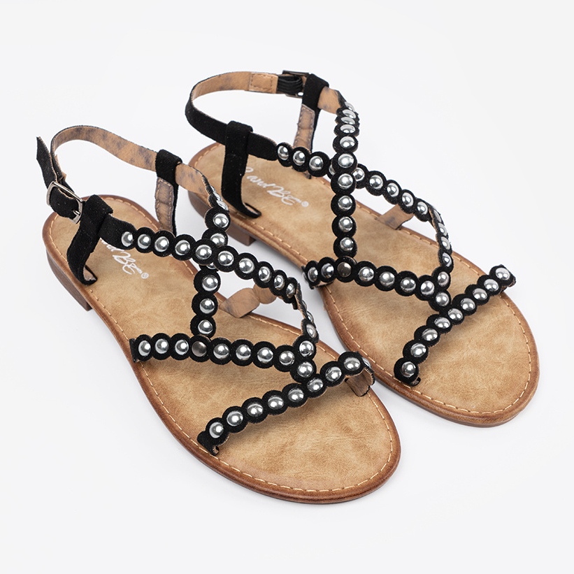 Detalhes: Sandálias pretas decoradas com pregos preto