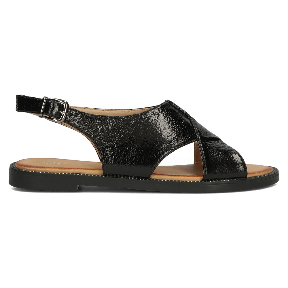 Descubra elegância e conforto nas sandálias femininas pretas Filippo DS2104/22 Bk. Estas sandálias envernizadas combinam estilo e conforto, combinando perfeitamente com as tendências da estação. Têm salto plano de 1,5 cm e plataforma de 0,5 cm, o que os torna a escolha ideal para os dias de verão, tanto para estilos casuais como mais elegantes.