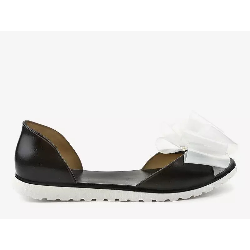 Descubra elegância e conforto com as sandálias pretas Meliska S5-3, que serão a escolha perfeita para qualquer ocasião. Estes elegantes sapatos femininos distinguem-se pelo seu design moderno e um toque original em forma de um grande laço branco com um clipe dourado, que chama a atenção e acrescenta charme.