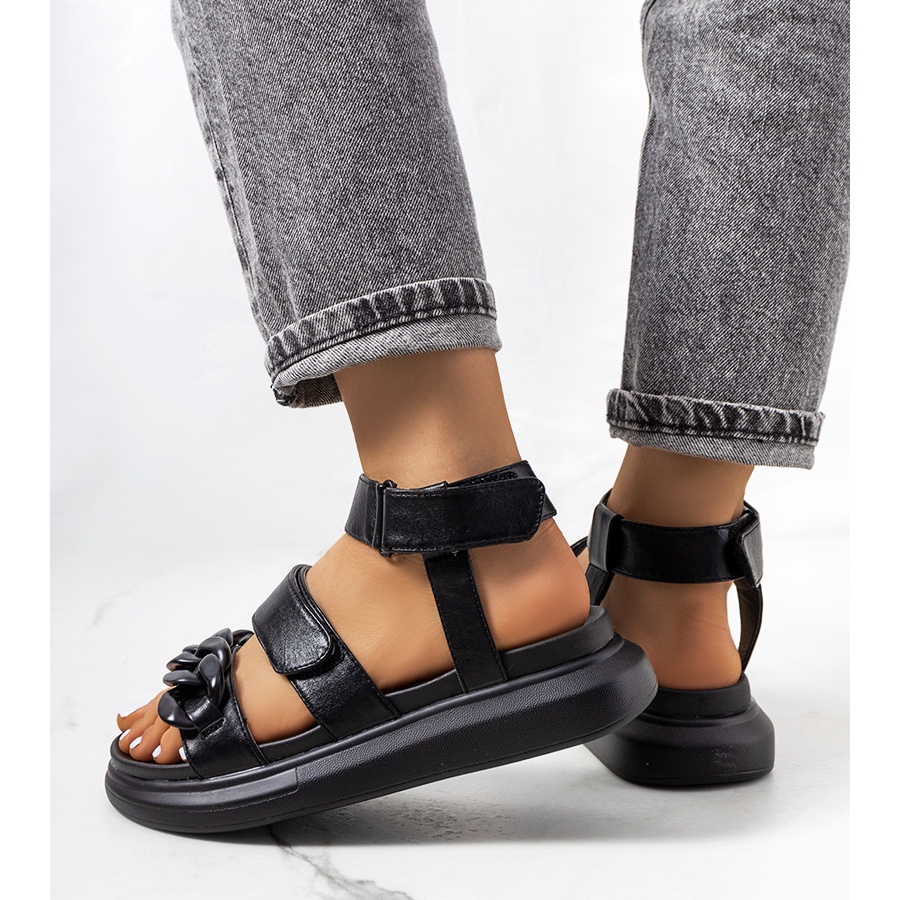 As sandálias plataforma Zepps pretas são a escolha perfeita para os dias de verão e vão enriquecer na perfeição qualquer estilo. Feitos em couro ecológico de alta qualidade, esses sapatos não só proporcionam um visual elegante, mas também são confortáveis de usar o dia todo. Graças ao fecho funcional de velcro, calçar e tirar as sandálias tornou-se extremamente simples e rápido, o que certamente será apreciado por todas as mulheres activas.