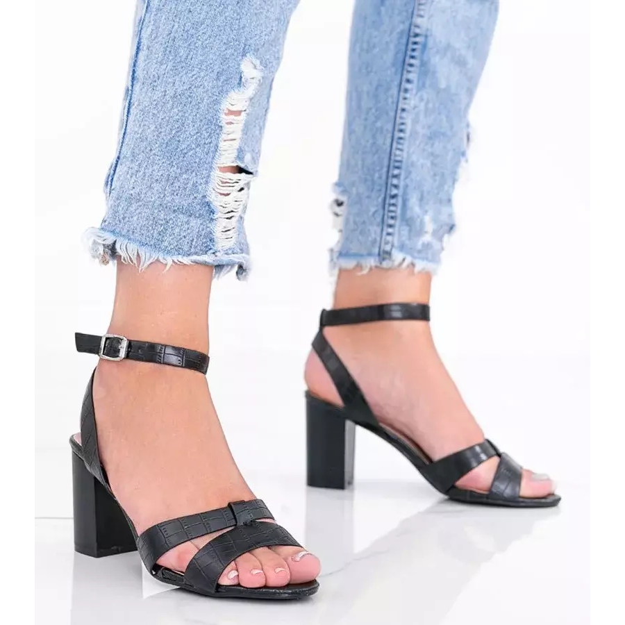 Descubra elegância e estilo com as sandálias pretas de salto alto Phoebo! Estas sandálias exclusivas, feitas de couro ecológico de alta qualidade com um moderno motivo de couro de crocodilo, são o complemento perfeito para o guarda-roupa de qualquer mulher. A clássica cor preta faz com que essas sandálias combinem perfeitamente com uma variedade de estilos, agregando elegância e sofisticação.