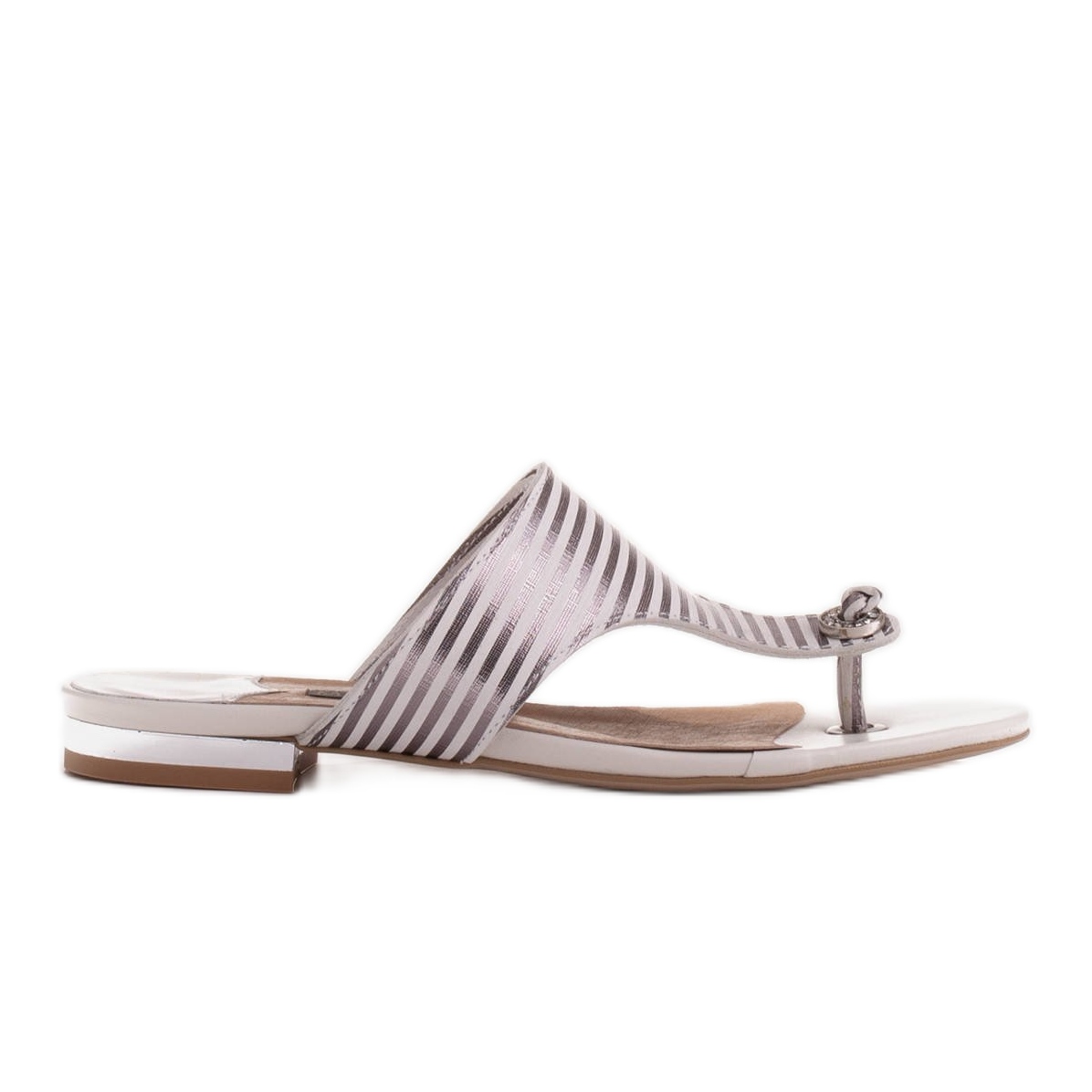 Descubra estilo e conforto únicos com as sandálias rasteiras Marco Shoes! Estes elegantes chinelos brancos com detalhes metálicos combinam perfeitamente com as últimas tendências da moda. Fabricados em couro granulado natural de alta qualidade, garantem excelente qualidade e durabilidade, e seu design clássico os torna uma combinação perfeita para muitos estilos de verão.