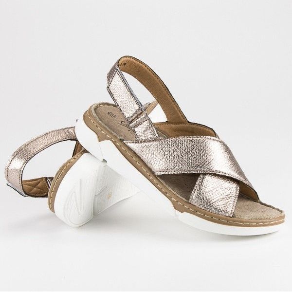 O salto do modelo é aberto, o que permite que os pés tenham ventilação adequada, e o conjunto fica leve e fresco. A sola de plástico com banda de rodagem garante uma boa aderência, importante nas caminhadas do dia a dia. A palmilha em pele natural adapta-se eficazmente ao formato do pé, oferecendo excelente amortecimento e suporte.