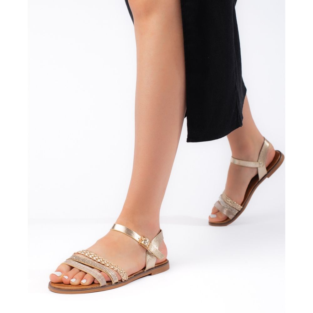 As sandálias rasteiras douradas femininas são obrigatórias em qualquer guarda-roupa e podem ser usadas em vários estilos - do casual ao mais elegante. Graças a eles, toda mulher se sentirá especial e confiante, independente da ocasião. A embalagem original do fabricante em forma de caixa faz das sandálias também uma ótima ideia para presente. Escolha sandálias rasteiras douradas e dê um pouco de brilho ao seu look do dia a dia!
