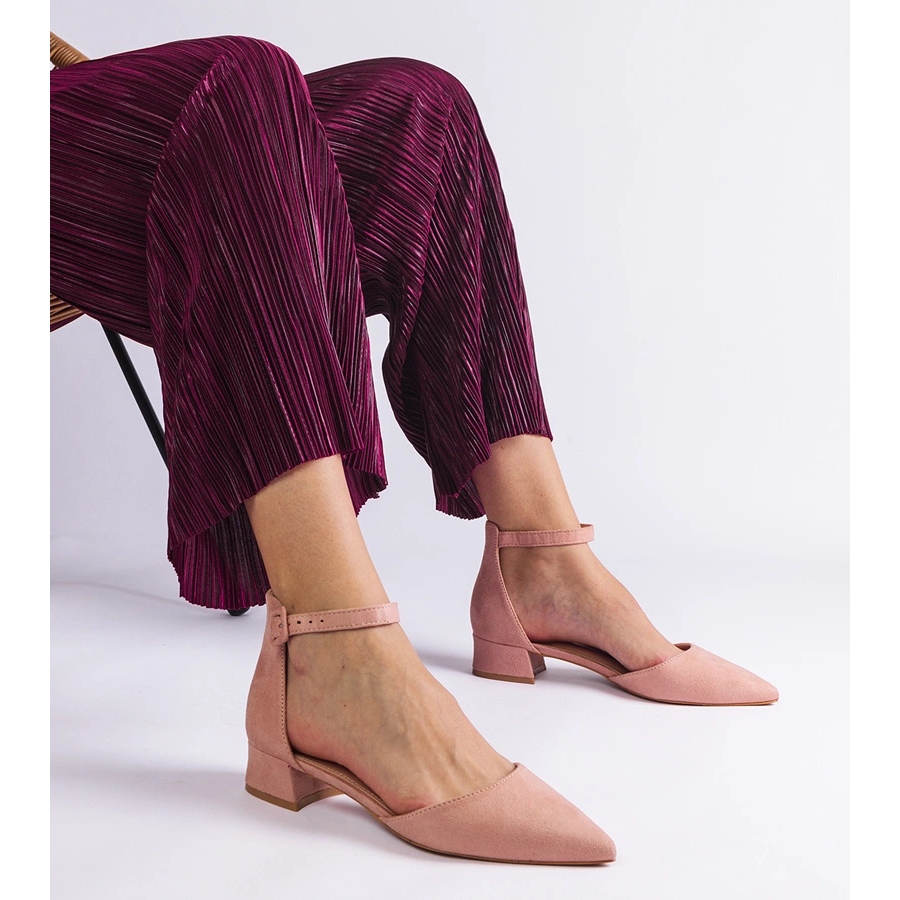 Sandálias rosa claro em um post baixo são a quintessência de um estilo de verão, que combinará perfeitamente com qualquer oferta de moda. O Modelo X08016, feito de couro de camurça ecológica de alta qualidade, cativos com seu tom sutil de rosa pálido, adicionando leveza e charme feminino ao cotidiano todos os dias e estilizações festivas.