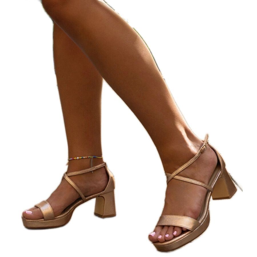 Sandálias rosa no Husne Post em Champagne é uma ótima proposta para os dias quentes de verão. Este modelo clássico é distinguido por um design moderno, o que o torna um complemento ideal para muitos estilos - todos os dias e mais elegantes. Feito de couro ecológico de alta qualidade, as sandálias não são apenas elegantes, mas também leves e confortáveis.