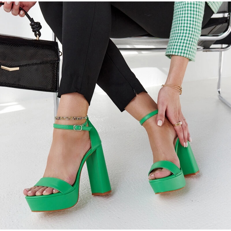 As sandálias verdes em um post de alto Sille são uma ótima opção para os dias de verão, combinando elegância com conforto. Feito de couro ecológico de alta qualidade, essas sandálias clássicas apresentam um design moderno que chama a atenção. A altura do calcanhar de 11,5 cm adiciona charme a cada estilização, e a fivela garante estabilidade e conforto ao usar.