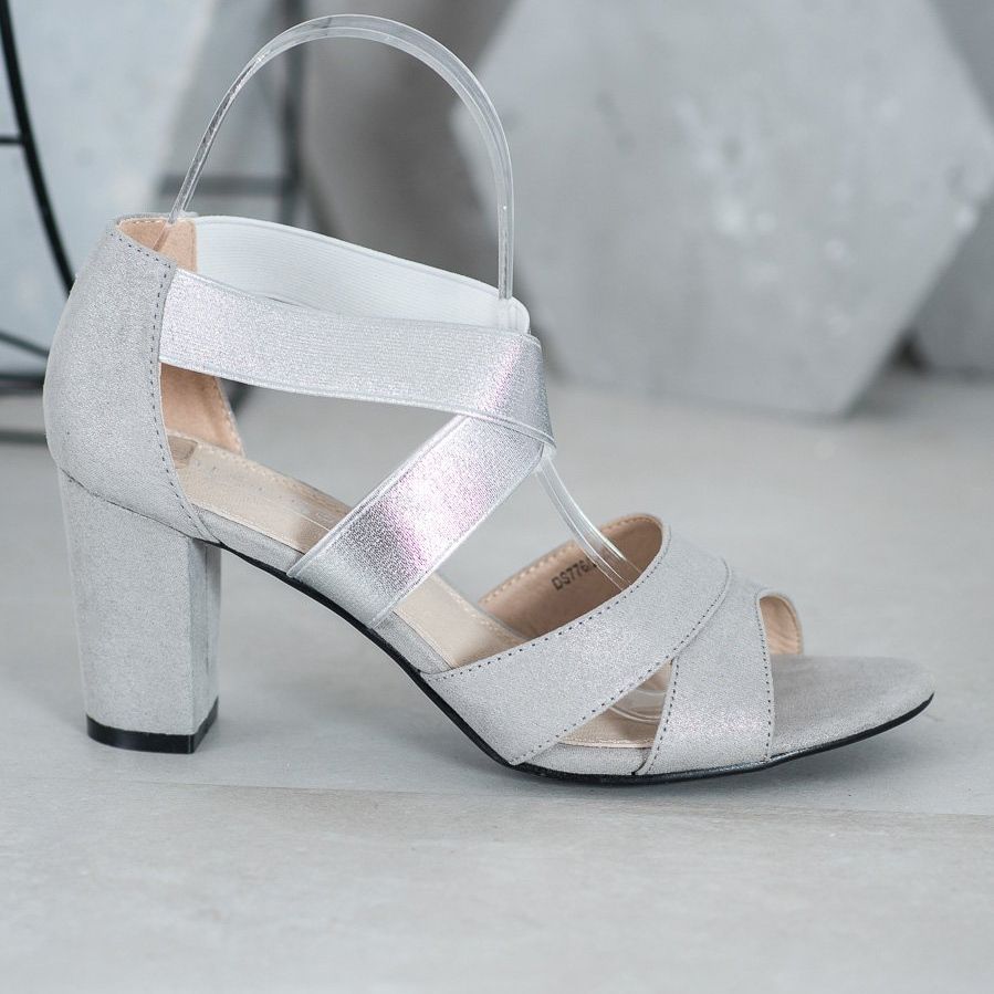 Confeccionadas em material prateado imitando couro, essas sandálias encantam pelo brilho sutil. A parte frontal do calçado é decorada com duas tiras cruzadas de material que expõem os pés com elegância. Além disso, há um motivo decorativo no pulso feito de material brilhante, que enfatiza seu caráter único.