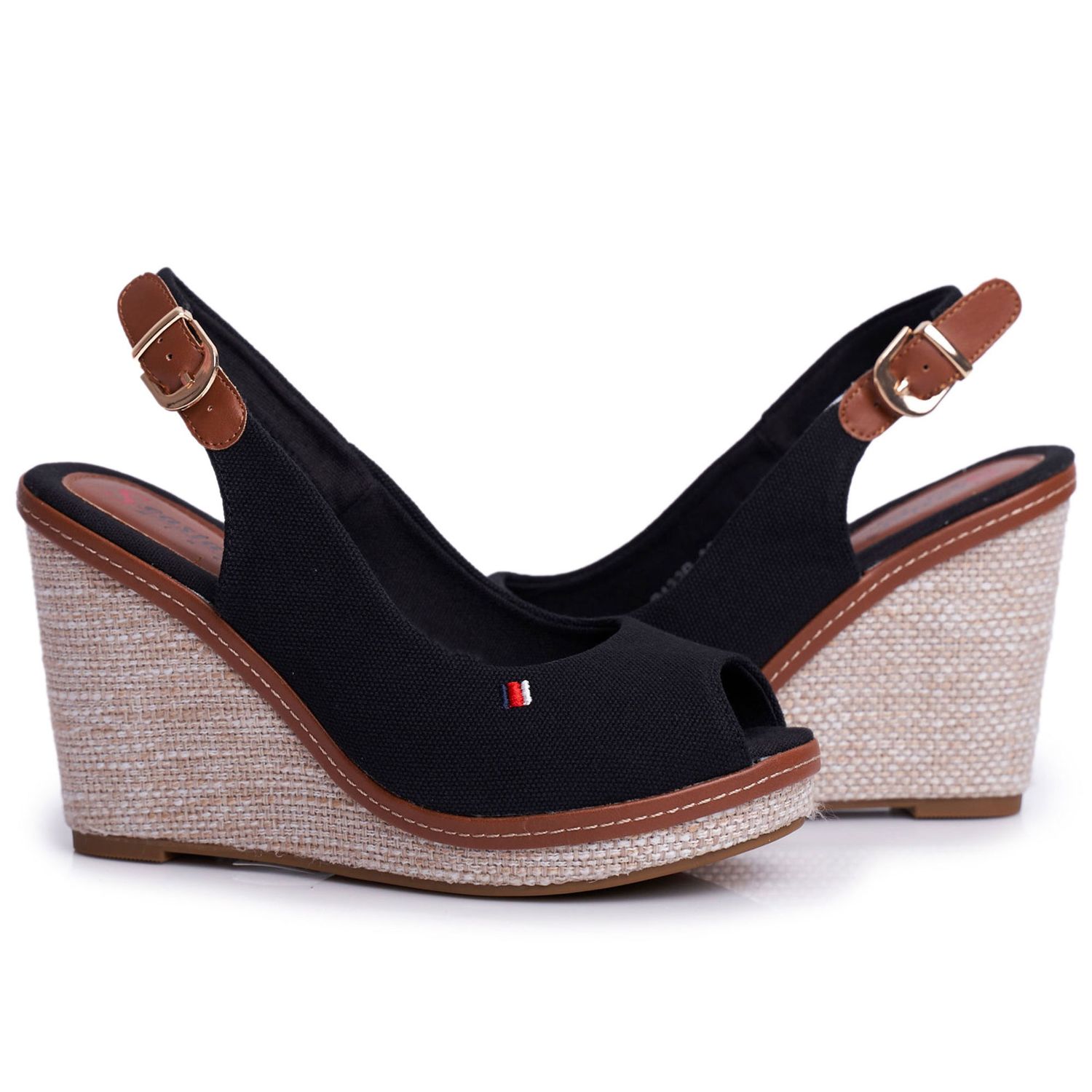 PS1 Sandálias Tommy Black Braided Wedge marrom preto