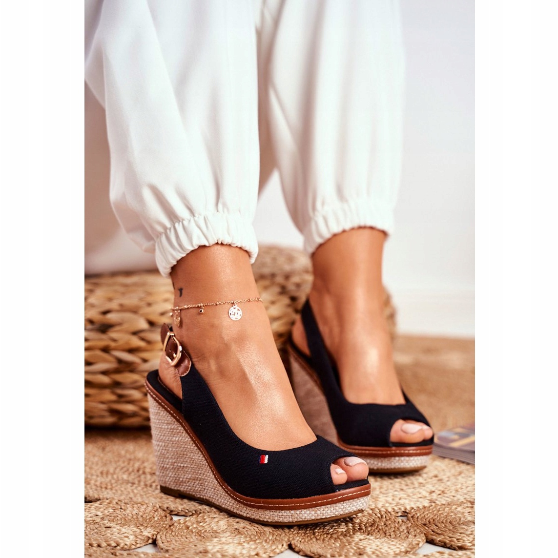 Detalhes: PS1 Sandálias Tommy Black Braided Wedge preto