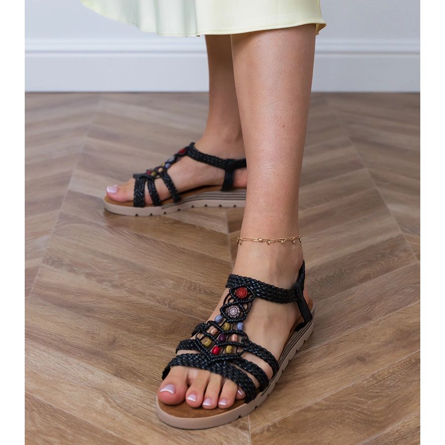 Detalhes: Sandálias trançadas pretas decoradas com contas preto