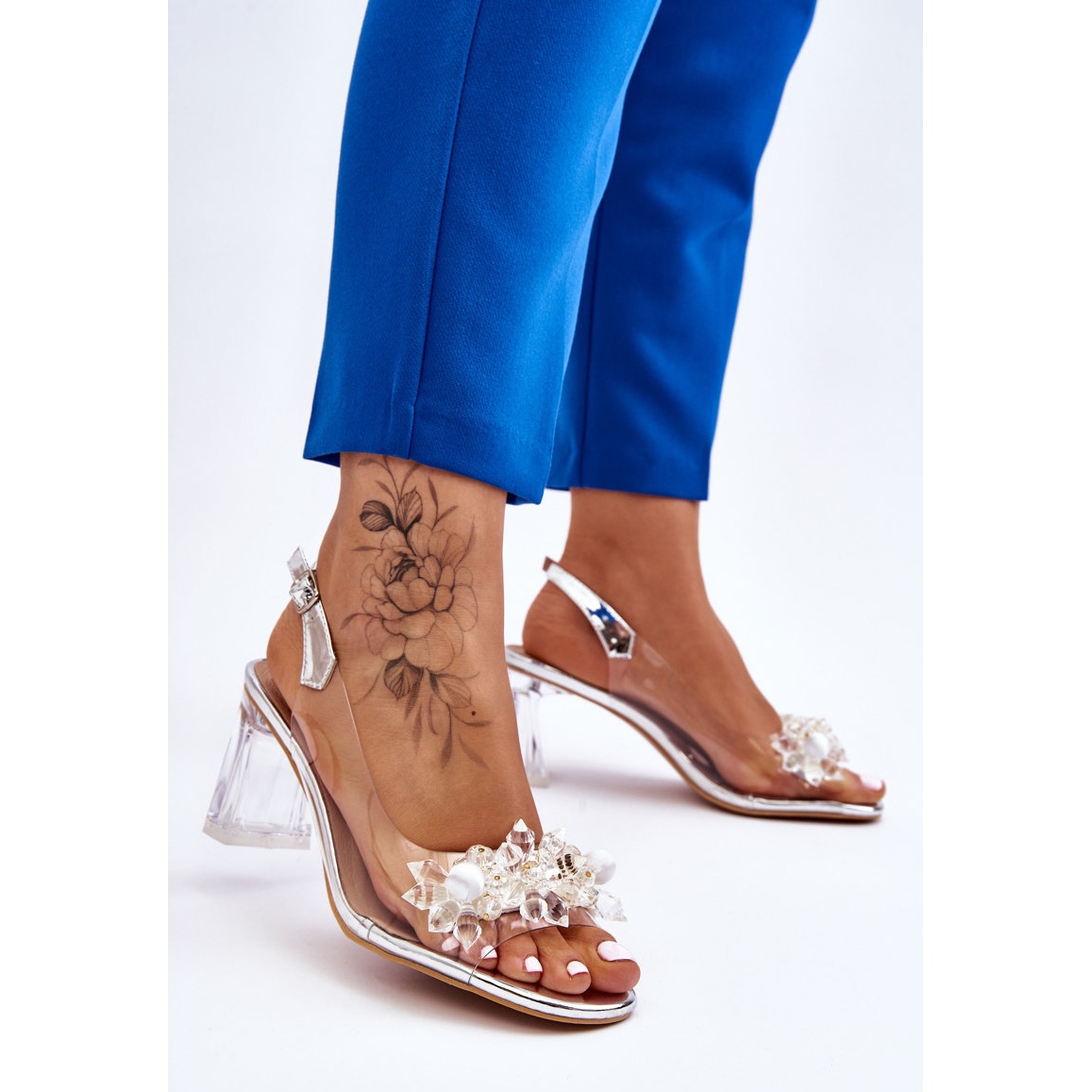 S. Barski Carmelo - Sandálias transparentes da moda com decorações, prata